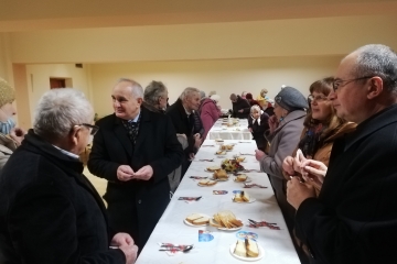 Uczestnikom wigilii życzenia złożyli Ksiądz Proboszcz Stanisław Porębski i Wójt Gminy Karol Górski. Podczas spotkania odbył się dedykowany osobom chorym i samotnym koncert chóru parafialnego. Dziękujemy wszystkim uczestniczącym, a w szczególności Parafialnemu oddziałowi „Caritas” oraz Chórowi Parafialnemu za organizację spotkania.